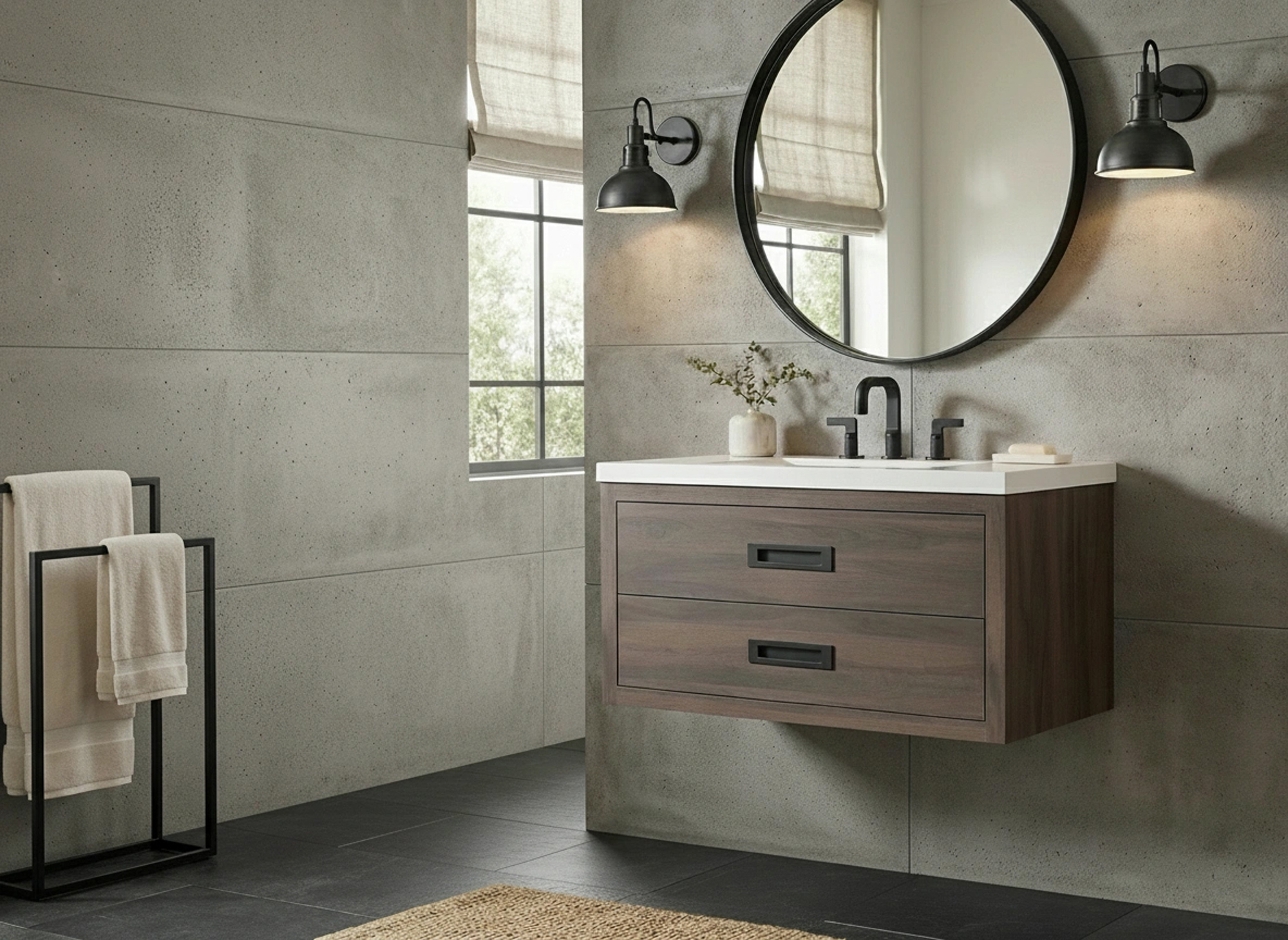 Basalt Concerto strikes a bold and industrial look with its deep grey coloring and subtle texture.