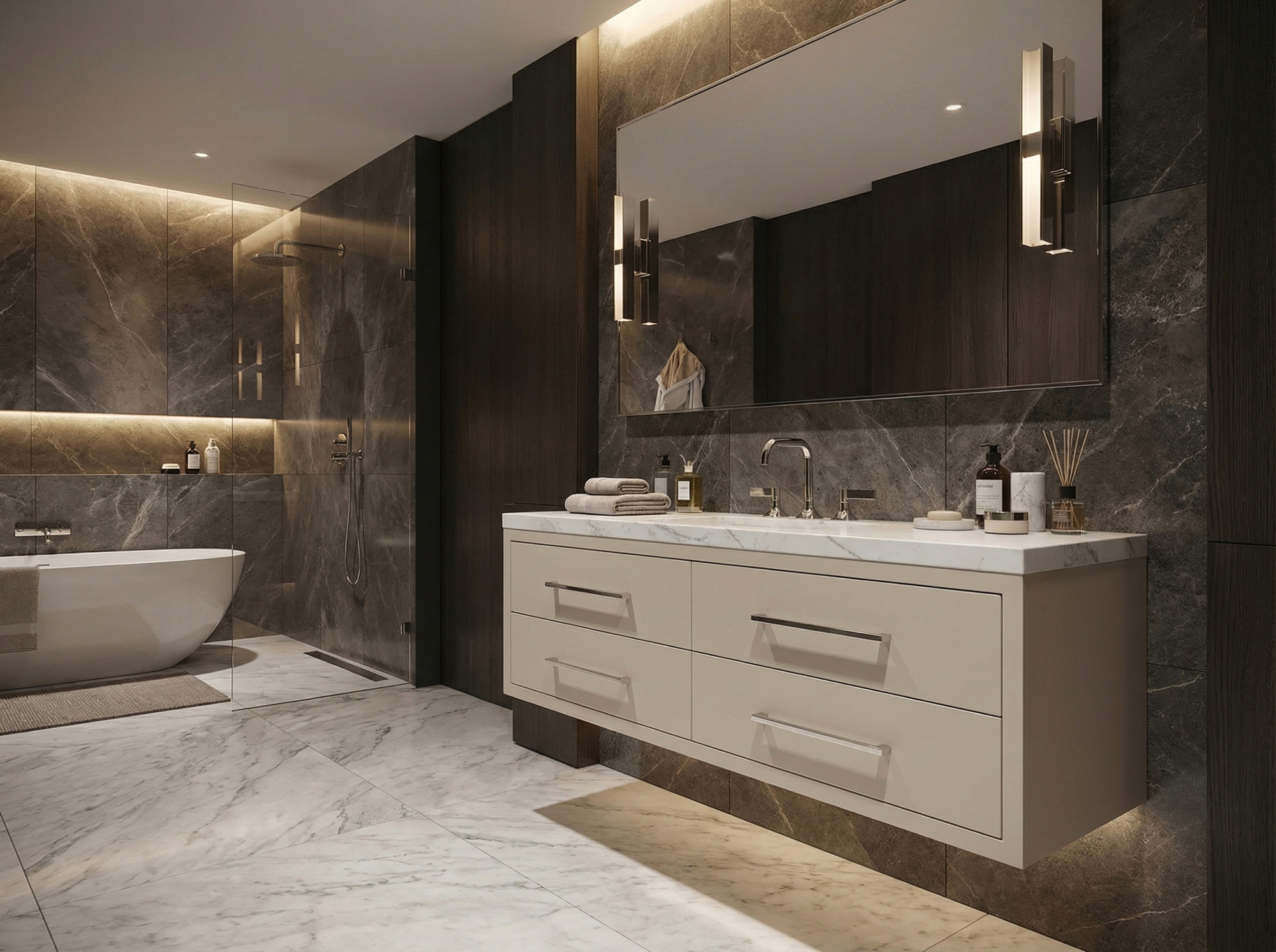 Pietra is a beautiful grey-brown quartz with an intense and sober tone that contrasts wonderfully in bright spaces, creating a dramatic look.