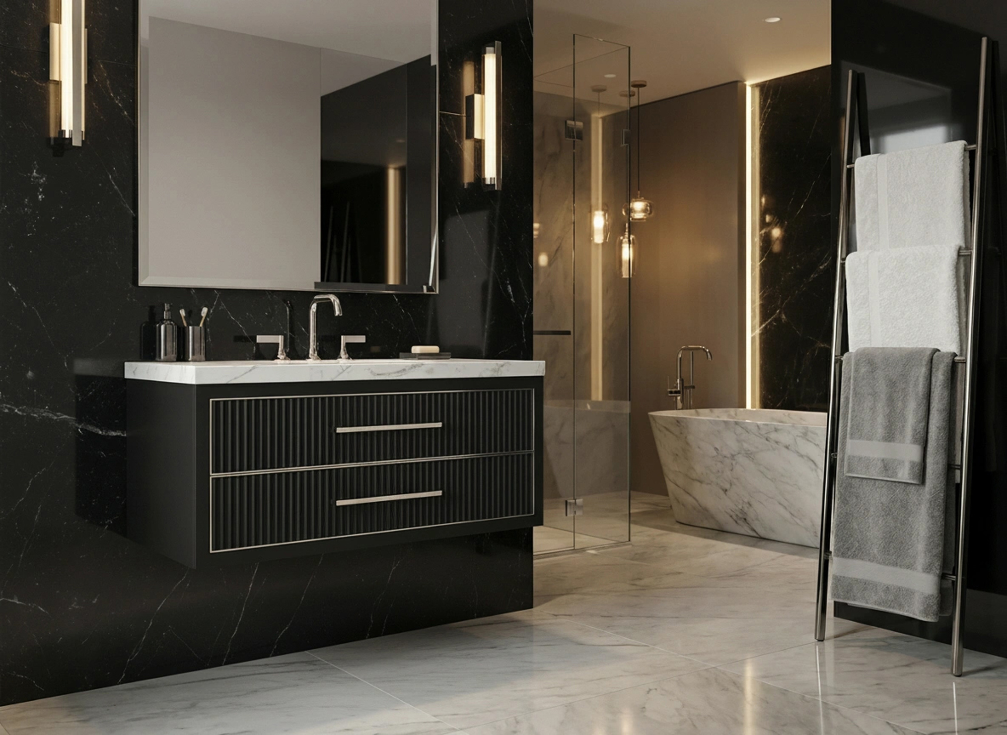 The matte black Fireclay is a versatile finish that can create a dramatic statement for any daring bath or something more refined with its dark and sleek elegance.