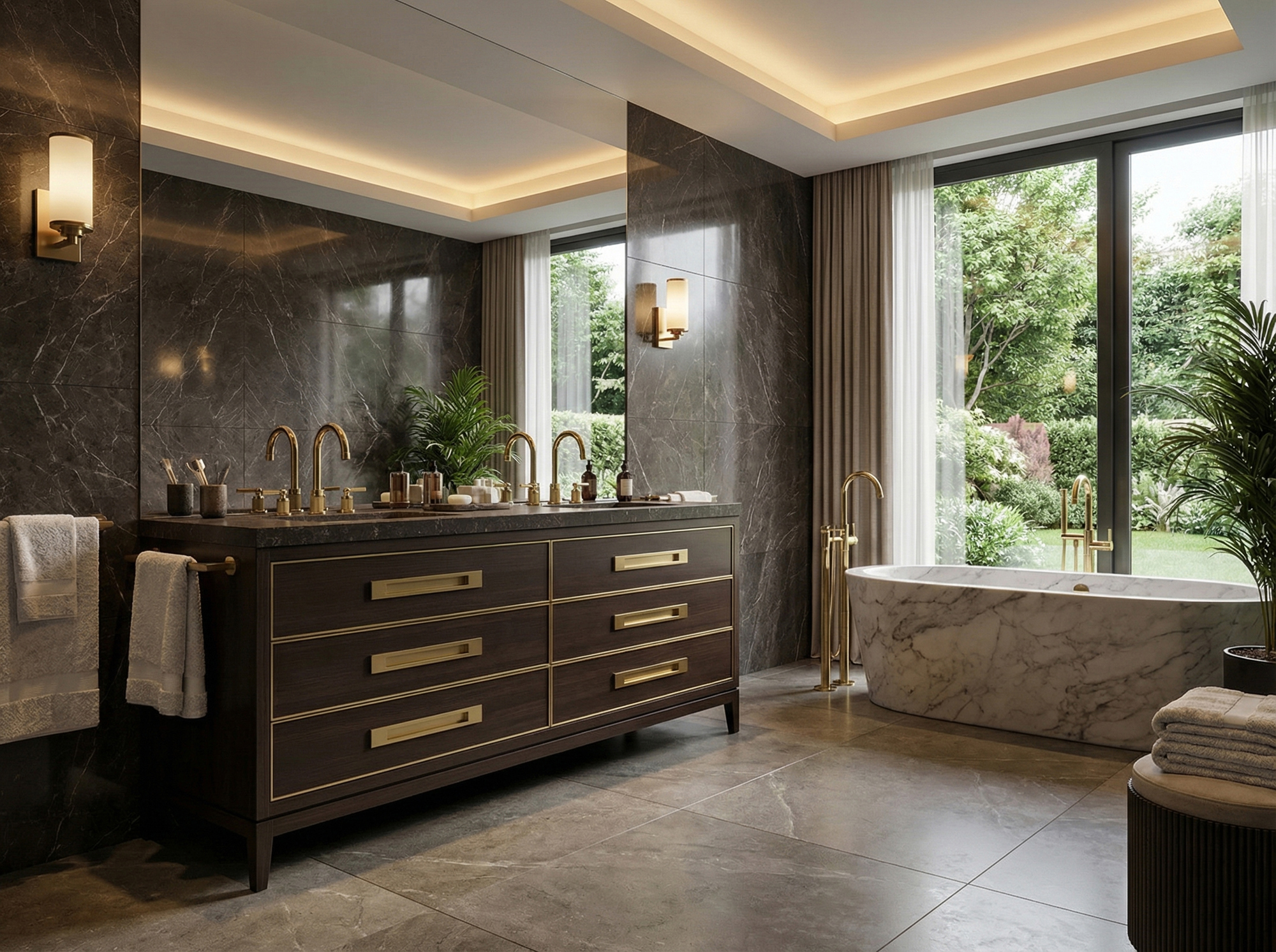 Pietra is a beautiful grey-brown quartz with an intense and sober tone that contrasts wonderfully in bright spaces, creating a dramatic look.