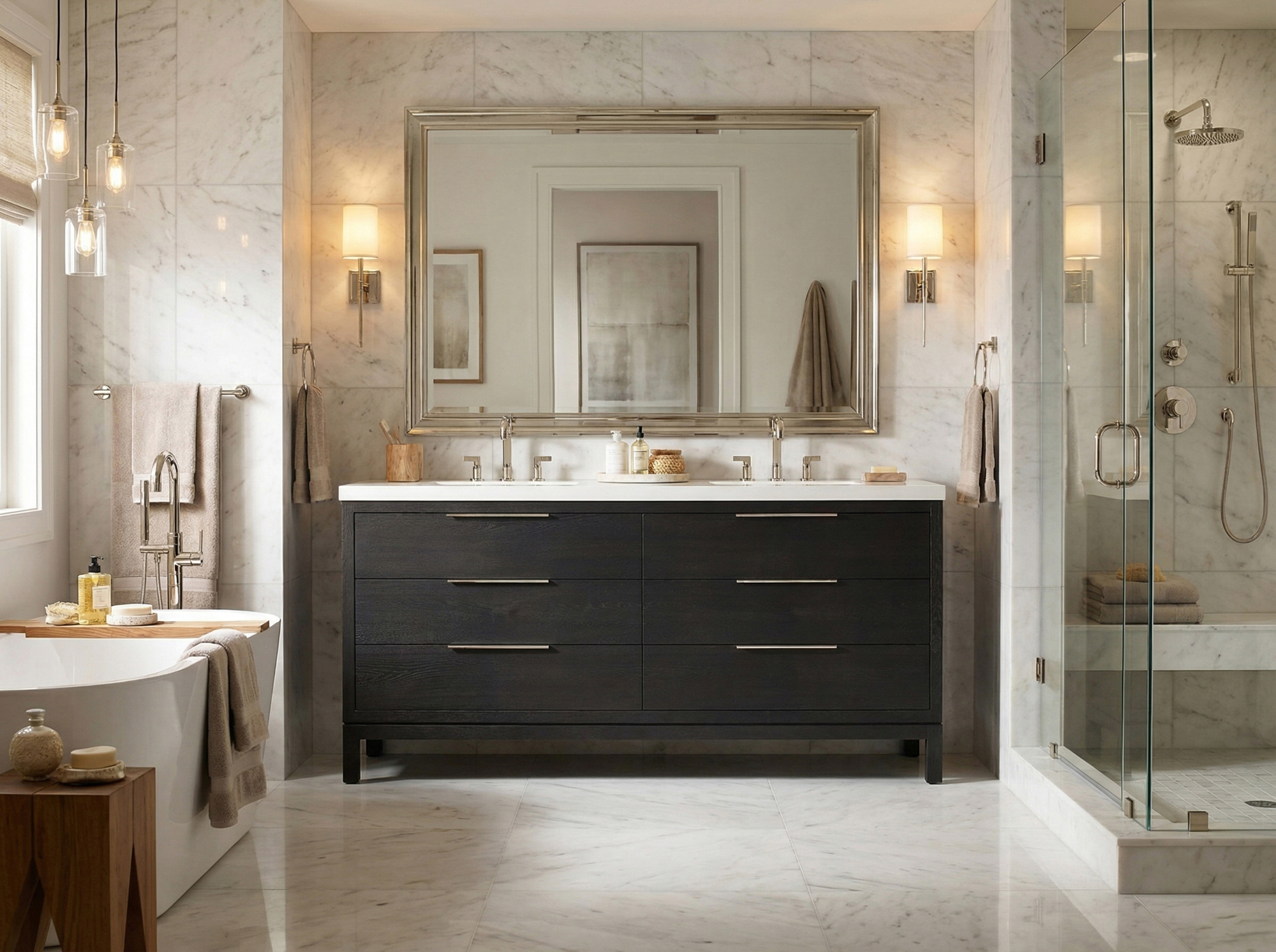 Quartz countertops are a low-maintenance option, perfect for any busy bathroom. Made from the strongest natural mineral found on earth and mixed with resin, they're nonporous, stain-resistant and easy to clean. You'll never have to seal, condition or polish a quartz countertop.