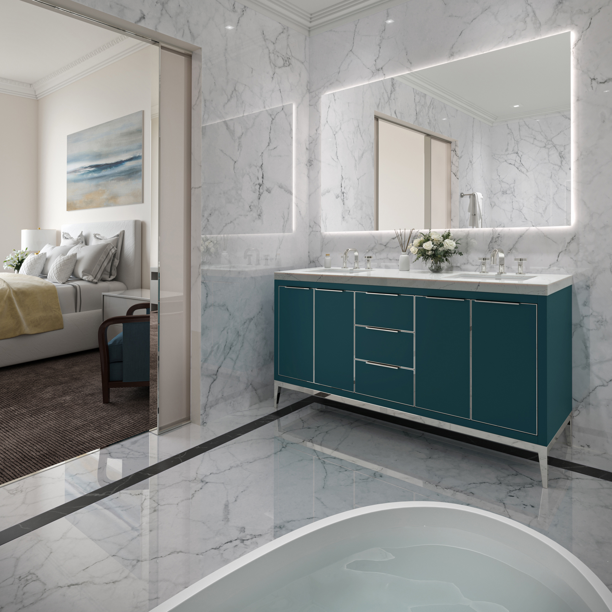 TROUGH54 sink is our most popular trough style sink shape for Fenix as it provides adequate counterspace on a 60" vanity. At 46 1/2" wide, it can be used in single or double faucet applications.
