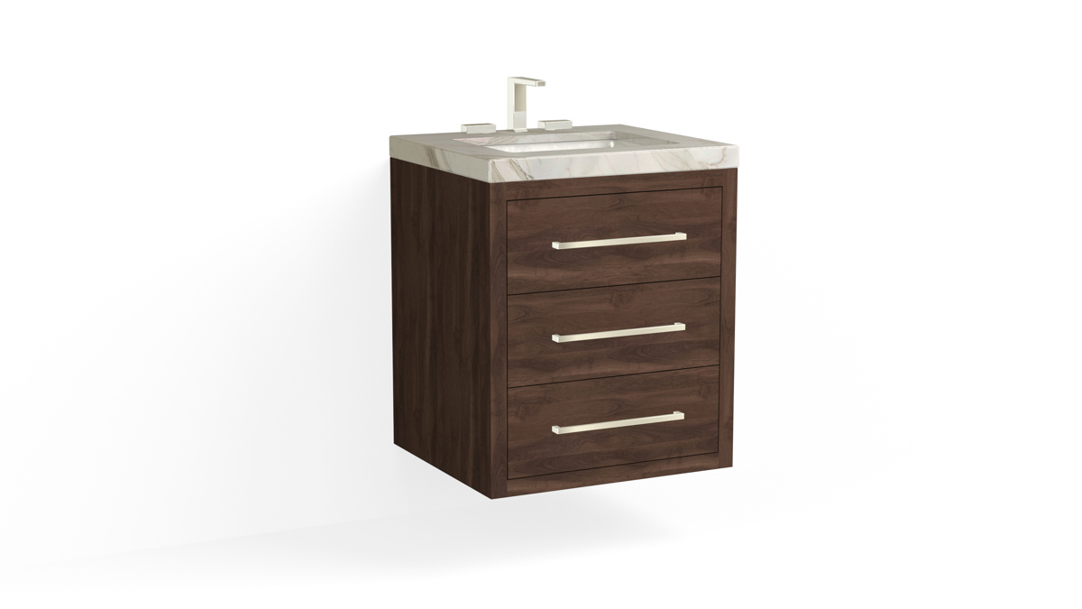 - Minimum countertop depth is 21 1/4" leaving 3" for deck mount faucets