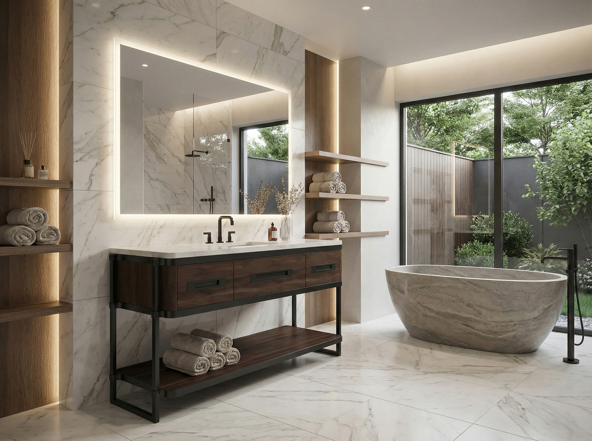 High quality stains applied to the best walnut and white oak make up our B-Wood finish options. Prized for their compatibility between all of our series, B-Wood finishes give your vanity that natural wood look and feel.