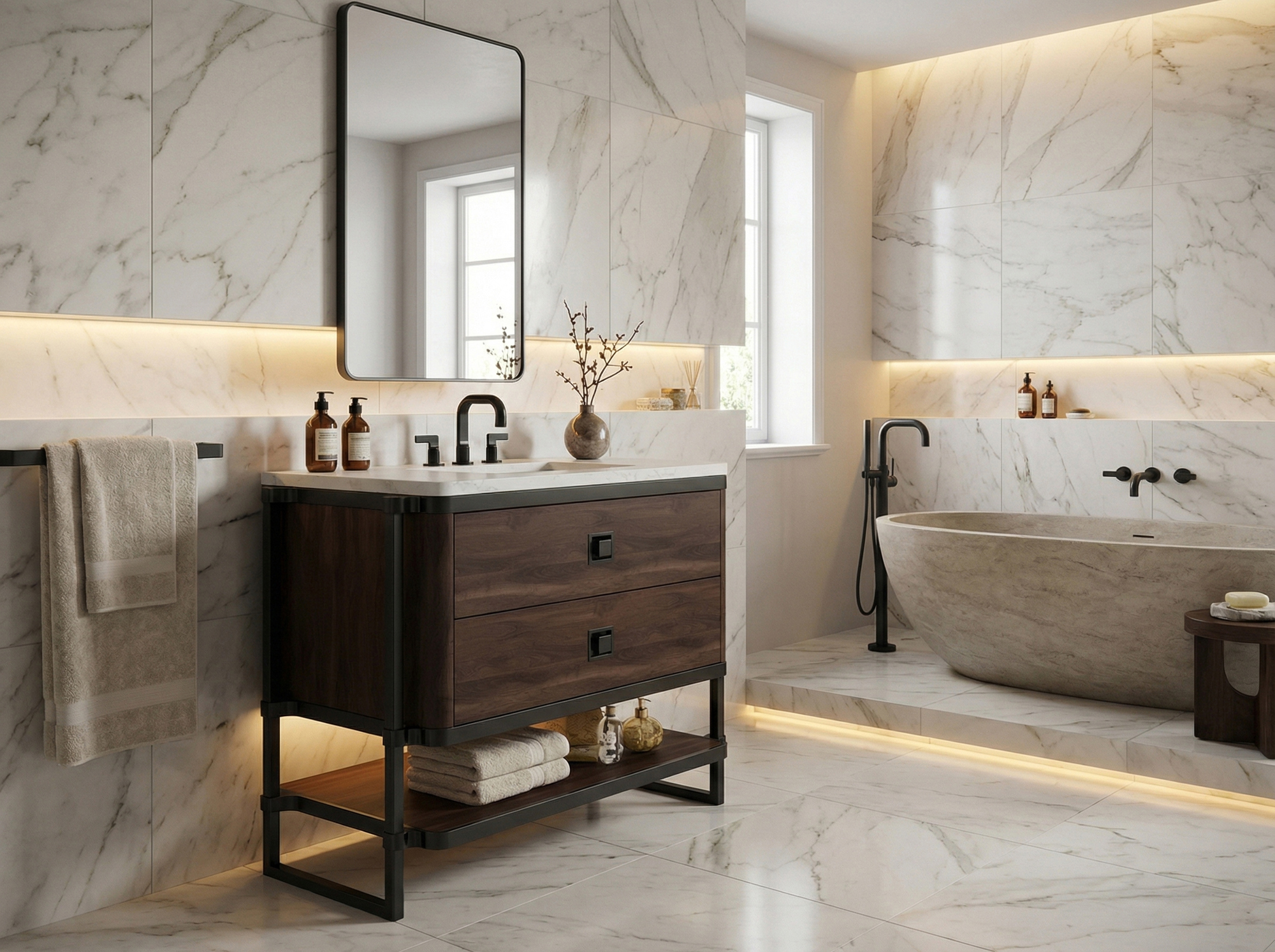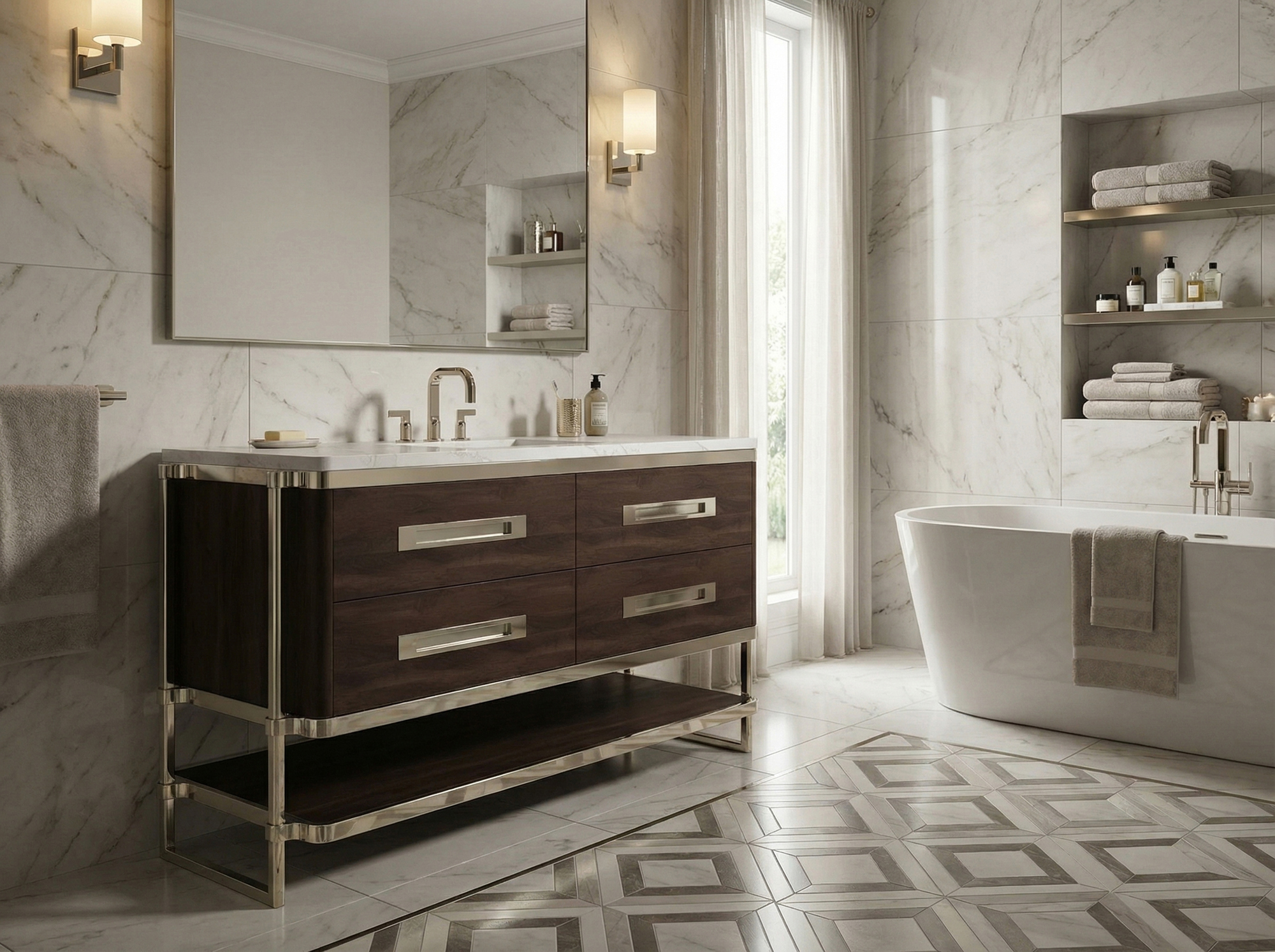 High quality stains applied to the best walnut and white oak make up our B-Wood finish options. Prized for their compatibility between all of our series, B-Wood finishes give your vanity that natural wood look and feel.