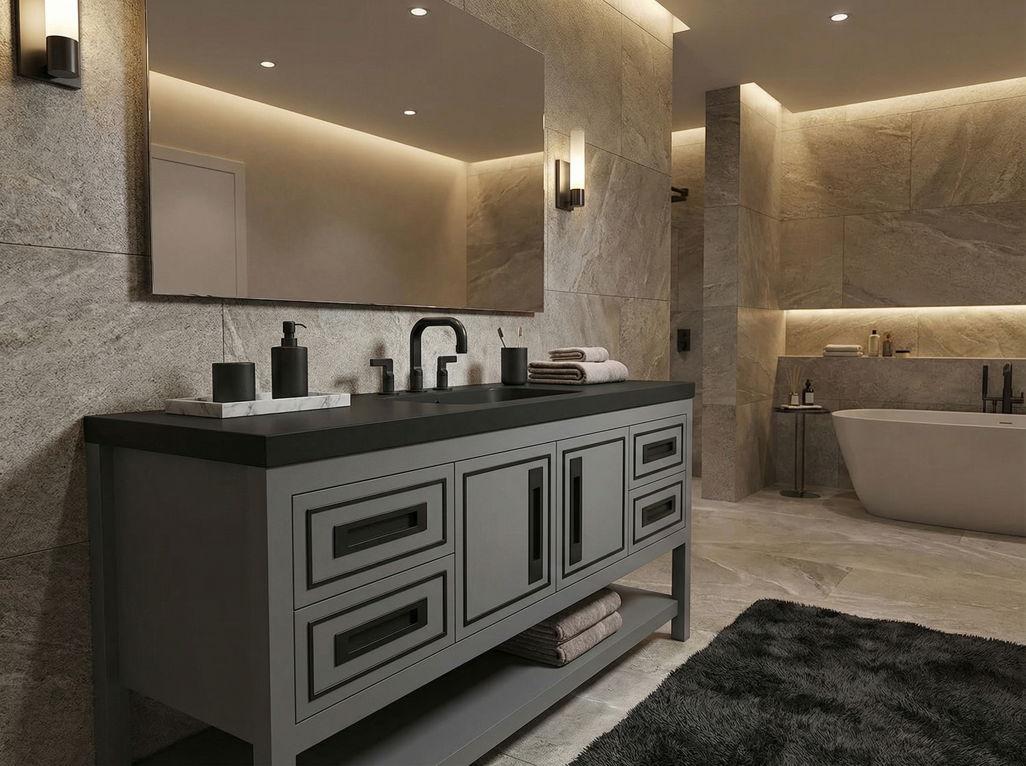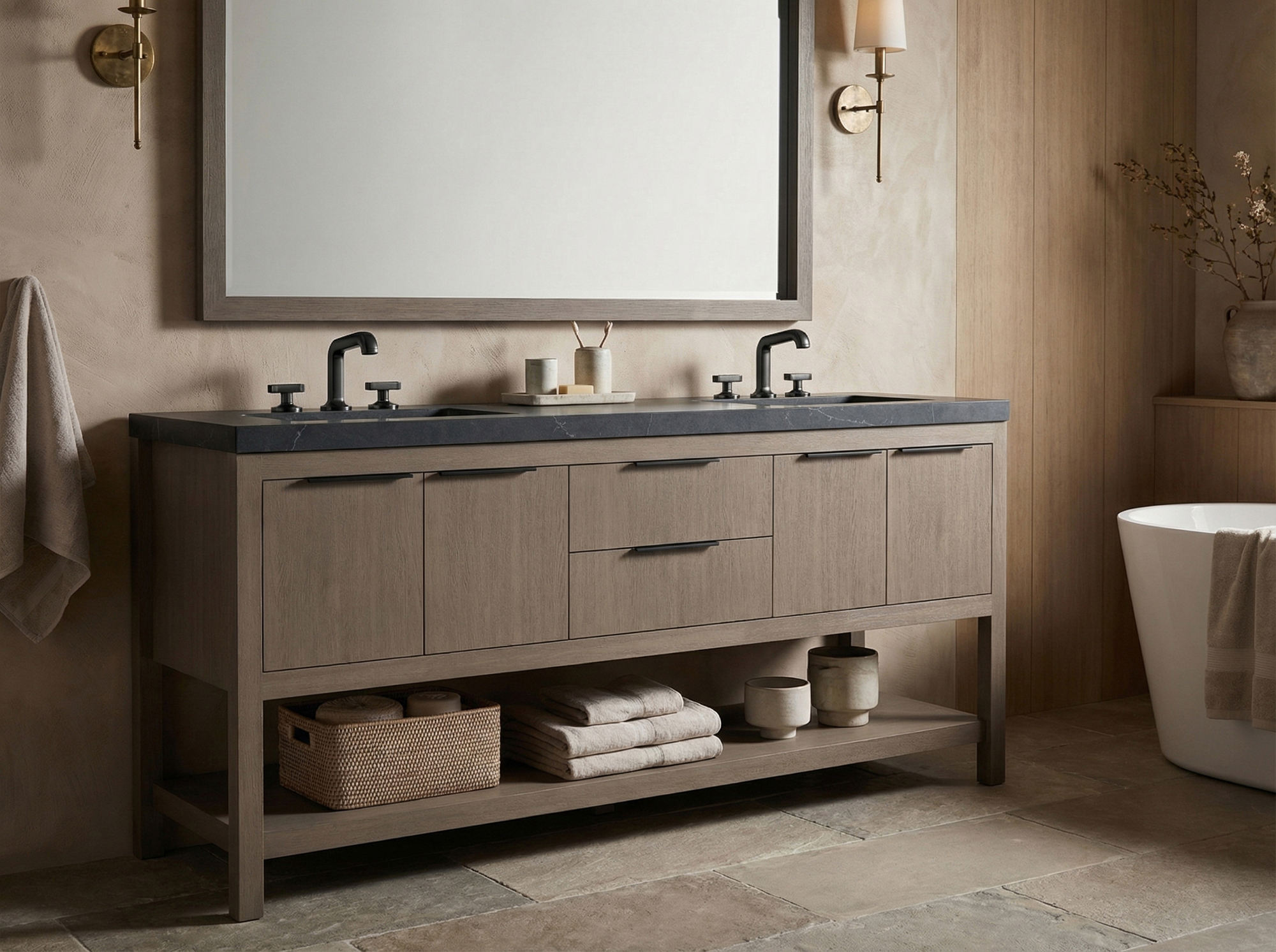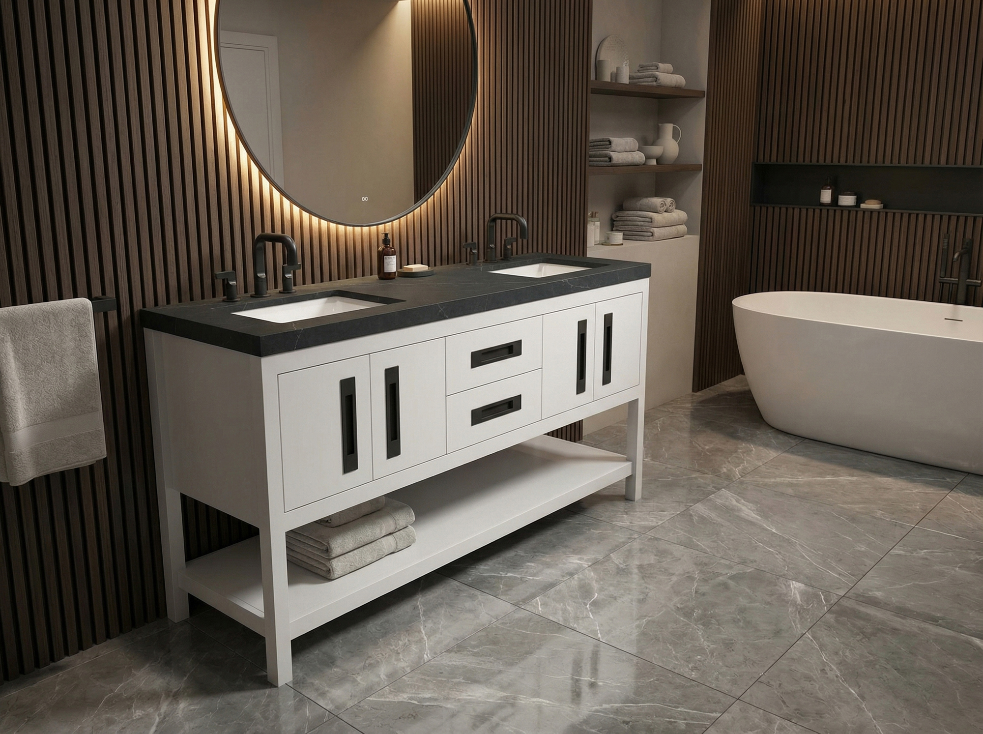 Combine 2 different finishes on one vanity by using our Combo Finish option. Just be sure to clearly identify which finish goes where.