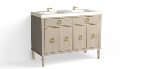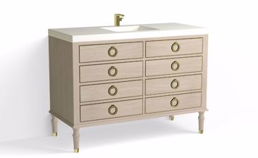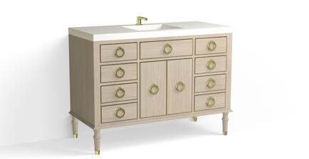 One of our most popular designs, Hayden features a traditional turned leg under inset slab drawers. Hayden maximizes storage in any bathroom by giving you one short drawer to organize smaller essentials and one deep drawer for towels, tall bottles or maybe our hairdryer/electric option.