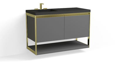 Floating just 4" above the floor, Avant is a striking design that fits into almost any decor. Avant features metal details like integrated pulls, 1/2" side panels combined with an open shelf and our drawer-in-a-drawer storage concept for holding everything you need.