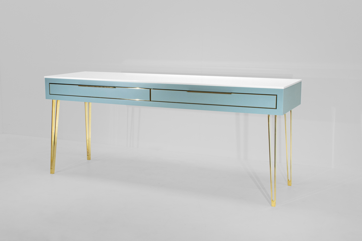 Featuring our hand welded Josie legs and thin metal banding around the drawers, our Josie Writing Desk is a perfect and stylish place to work. Hardware and Tops are sold separately Pricing starts at: $6,145