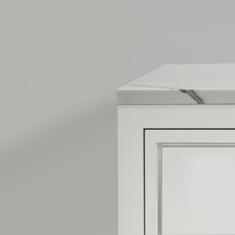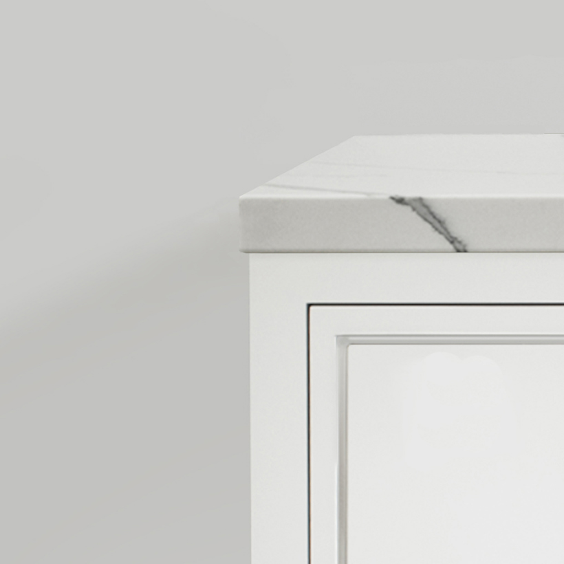 Our most popular top, Guildstone 2.0 has a 2" thick edge profile and is compatible with every design we offer. Guildstone 2.0 is available in White Matte and White Gloss.