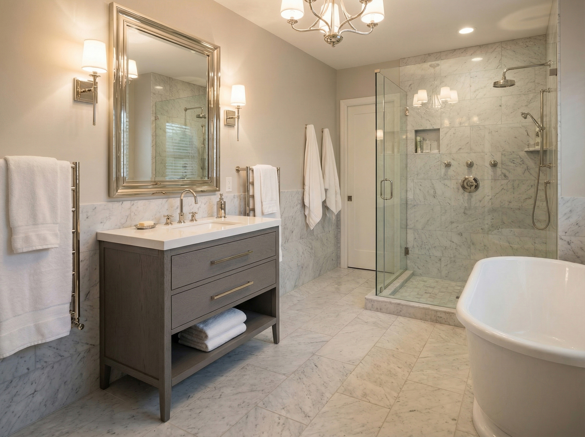Quartz countertops are a low-maintenance option, perfect for any busy bathroom. Made from the strongest natural mineral found on earth and mixed with resin, they're nonporous, stain-resistant and easy to clean. You'll never have to seal, condition or polish a quartz countertop.