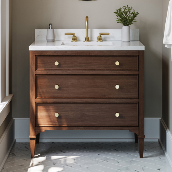 Quartz countertops are a low-maintenance option, perfect for any busy bathroom. Made from the strongest natural mineral found on earth and mixed with resin, they're nonporous, stain-resistant and easy to clean. You'll never have to seal, condition or polish a quartz countertop.