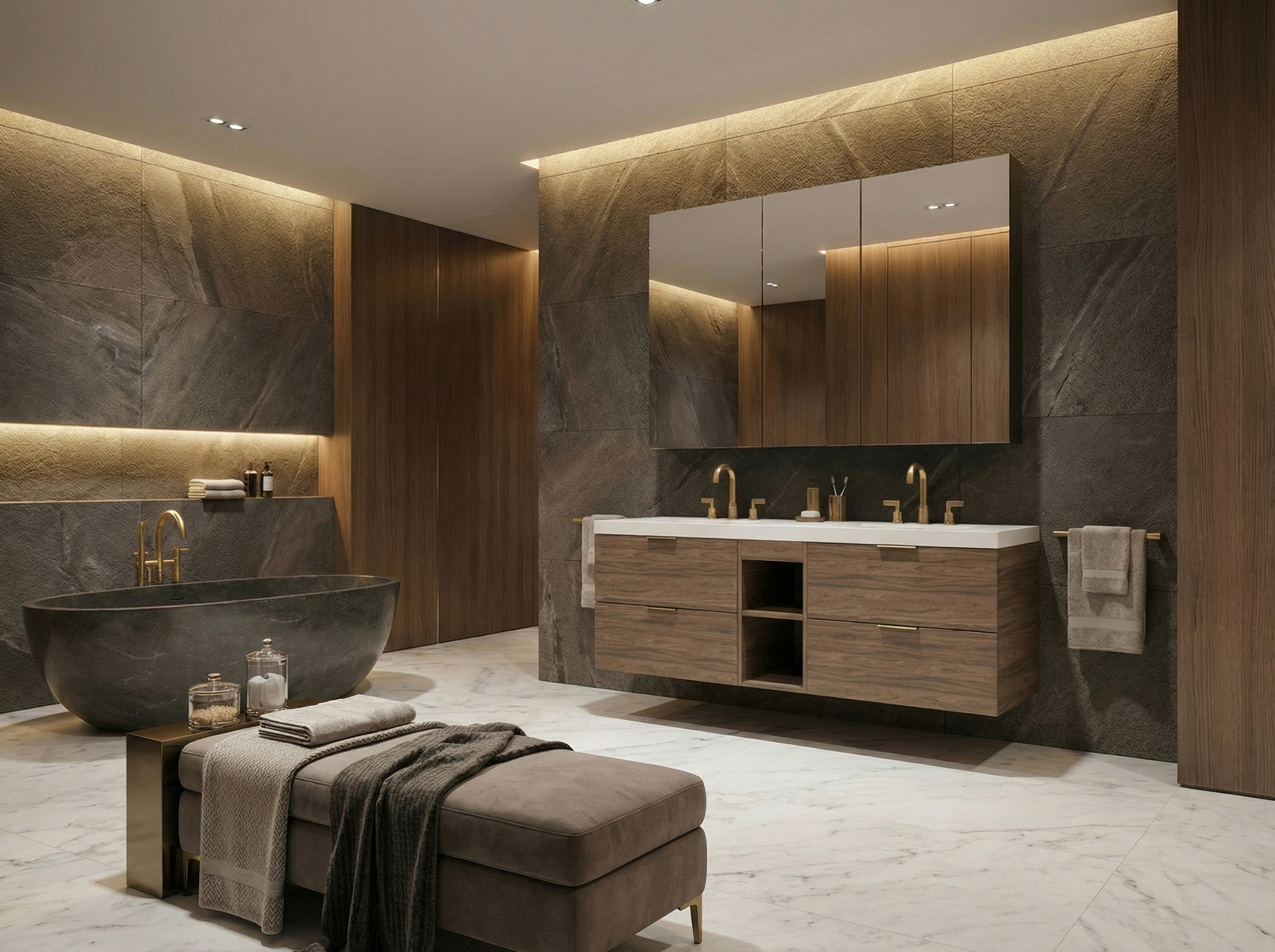 Pietra is a beautiful grey-brown quartz with an intense and sober tone that contrasts wonderfully in bright spaces, creating a dramatic look.