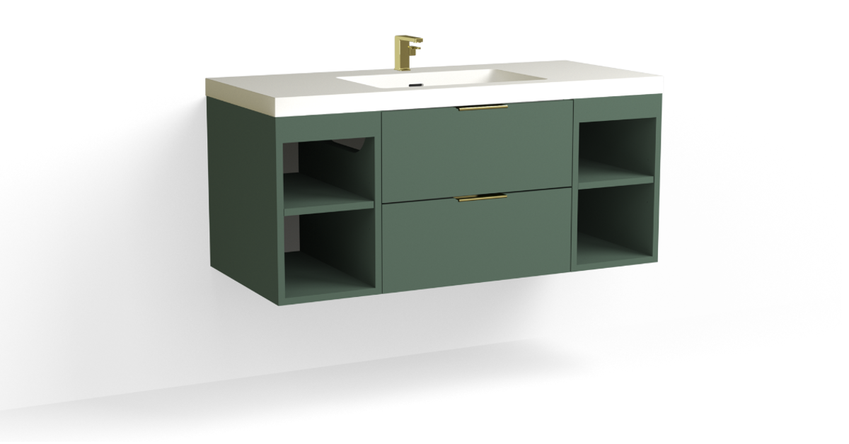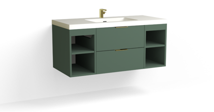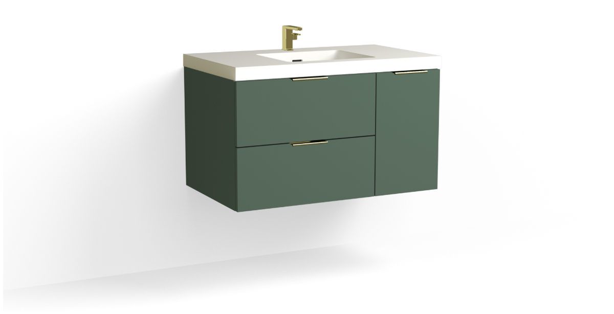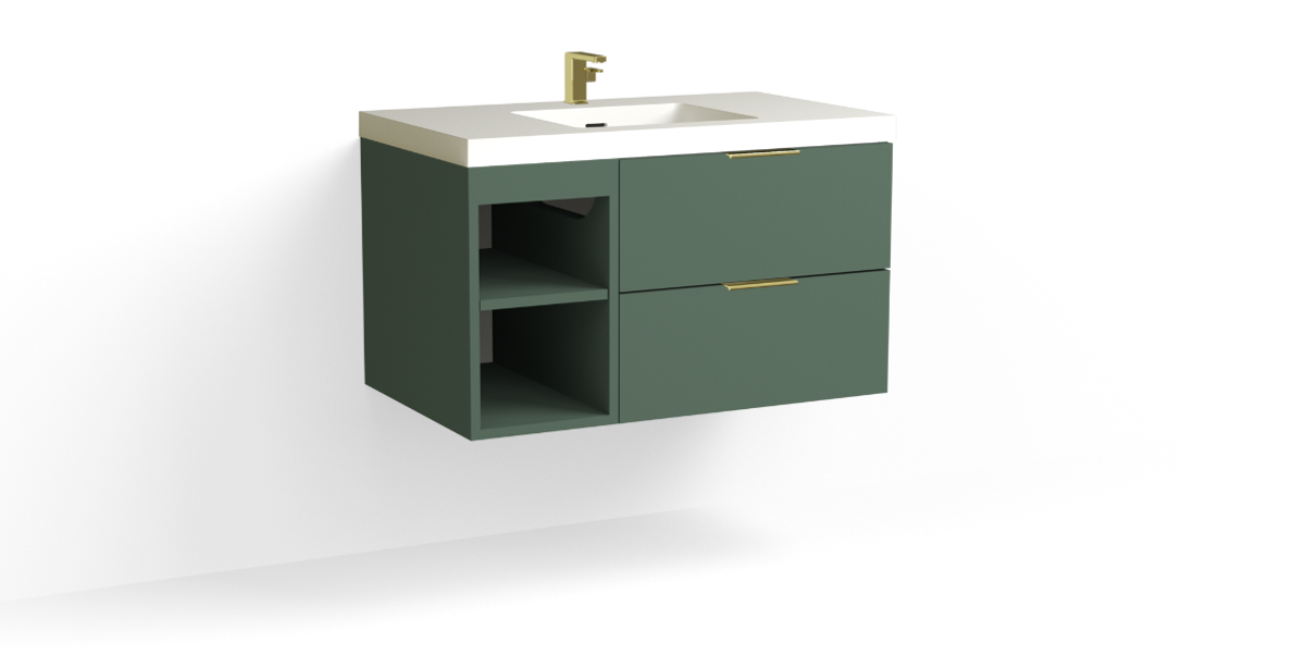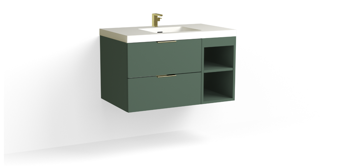 Our most popular countertop, Guildstone 2.0 has a 2" thick edge profile and is compatible with every design we offer. Guildstone 2.0 is available in White Matte and White Gloss.