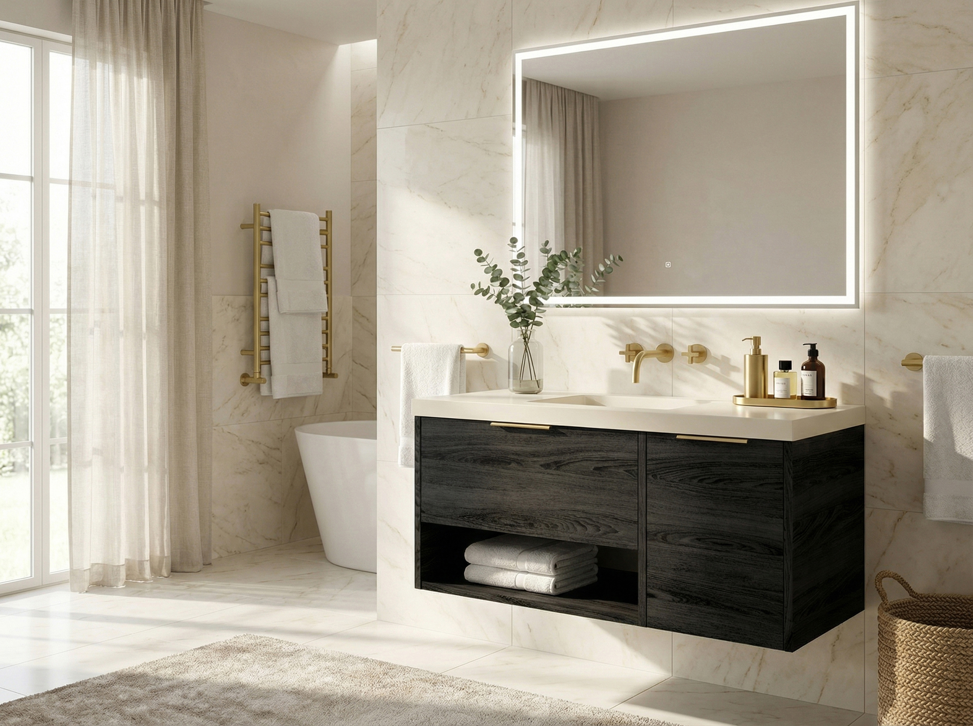- Requires non-switched electrical outlet to be placed 25"H and 6" from right side of vanity