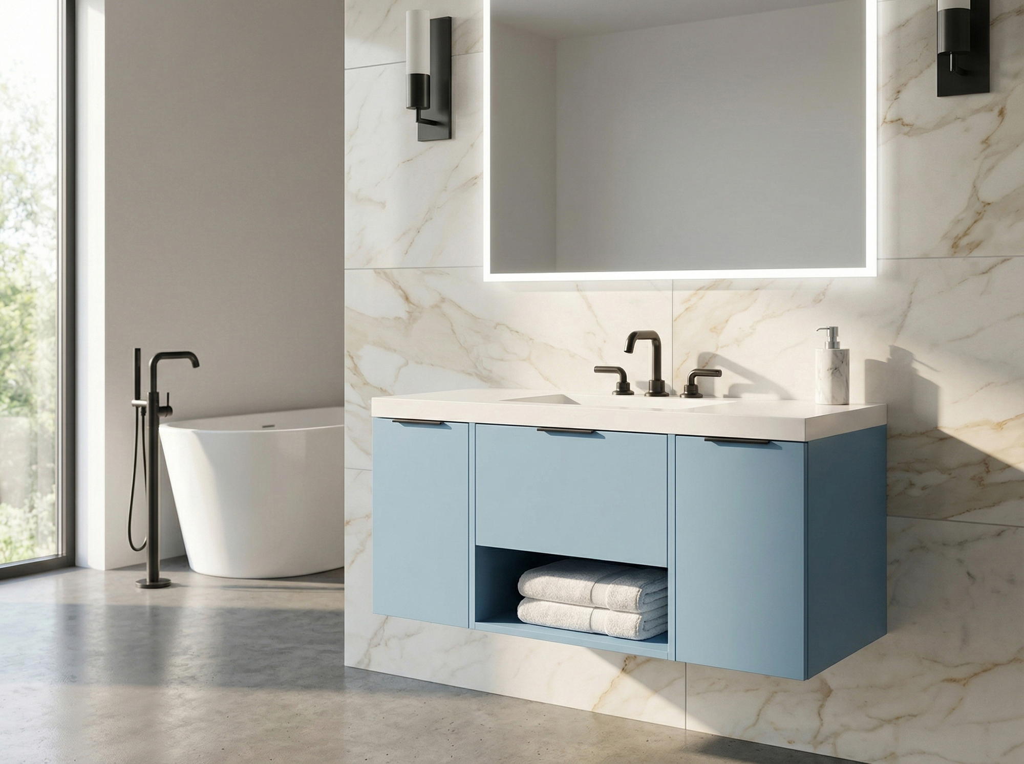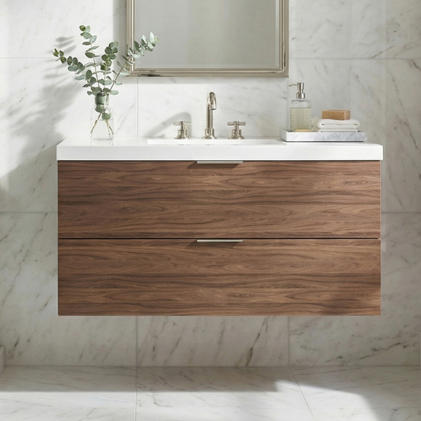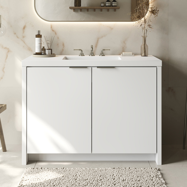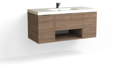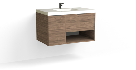 This vanity is part of our quick ship program that allows you to purchase ready made, top quality, high end bathroom vanities and have them shipped to you at an expedited rate. Modo includes a split drawer with an open shelf. New for 2025, Expanded colors, configurations and options available with a longer lead time.