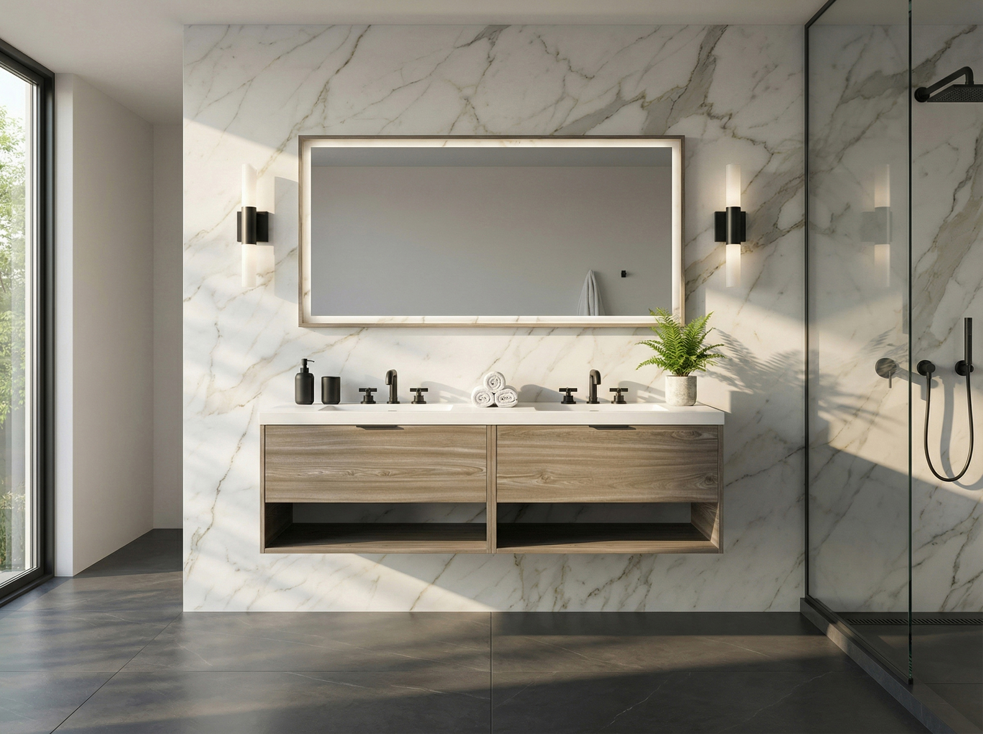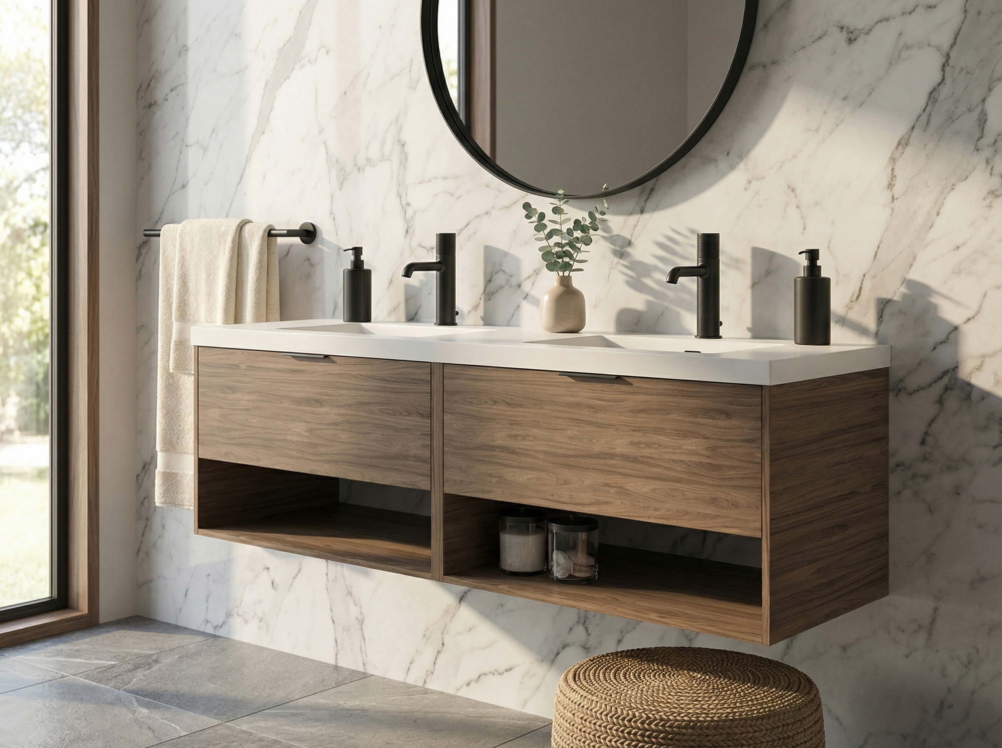 Textured laminate surfaces, the C-Tex finish options are a great modern alternatives to natural wood substrates. These finishes are becoming more and more popular in contemporary designs due to their versatility and ability to have a continuous/match grain. These finishes look fantastic when used for our longer vanity options but don't underestimate their ability to command in smaller spaces.