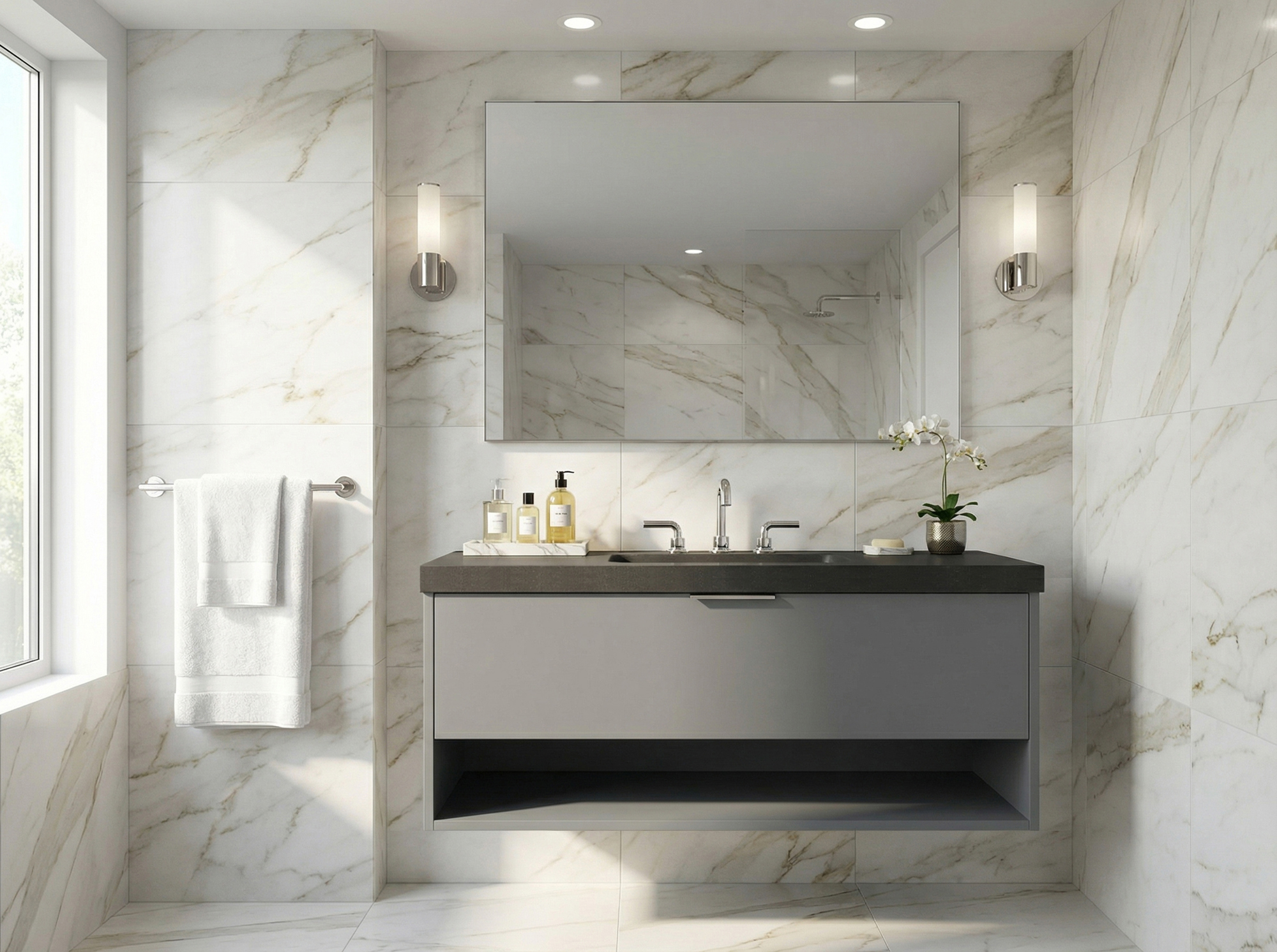 Quartz countertops are a low-maintenance option, perfect for any busy bathroom. Made from the strongest natural mineral found on earth and mixed with resin, they're nonporous, stain-resistant and easy to clean. You'll never have to seal, condition or polish a quartz countertop.